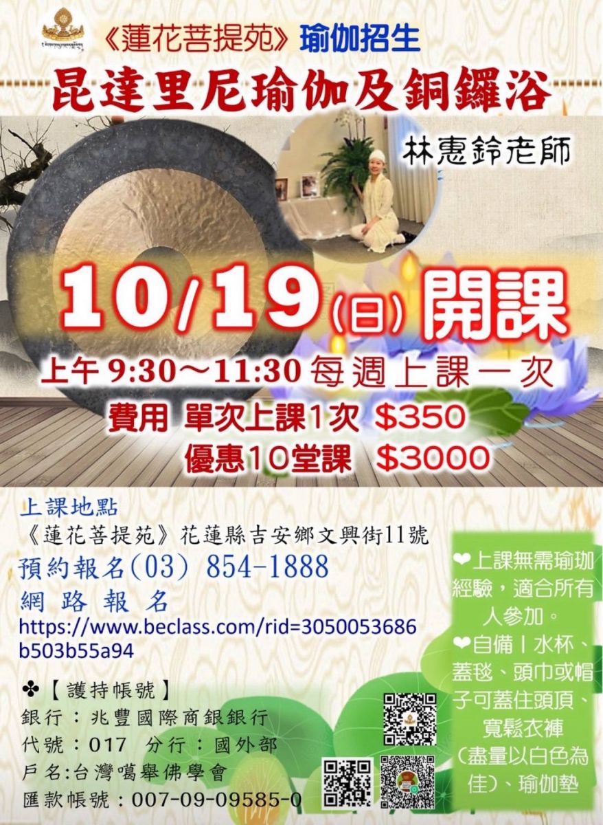 課程將從調頻、暖身、唱誦、冥想、基礎體位法練習,引導參與者漸進的過程進入銅鑼聲波療癒中。