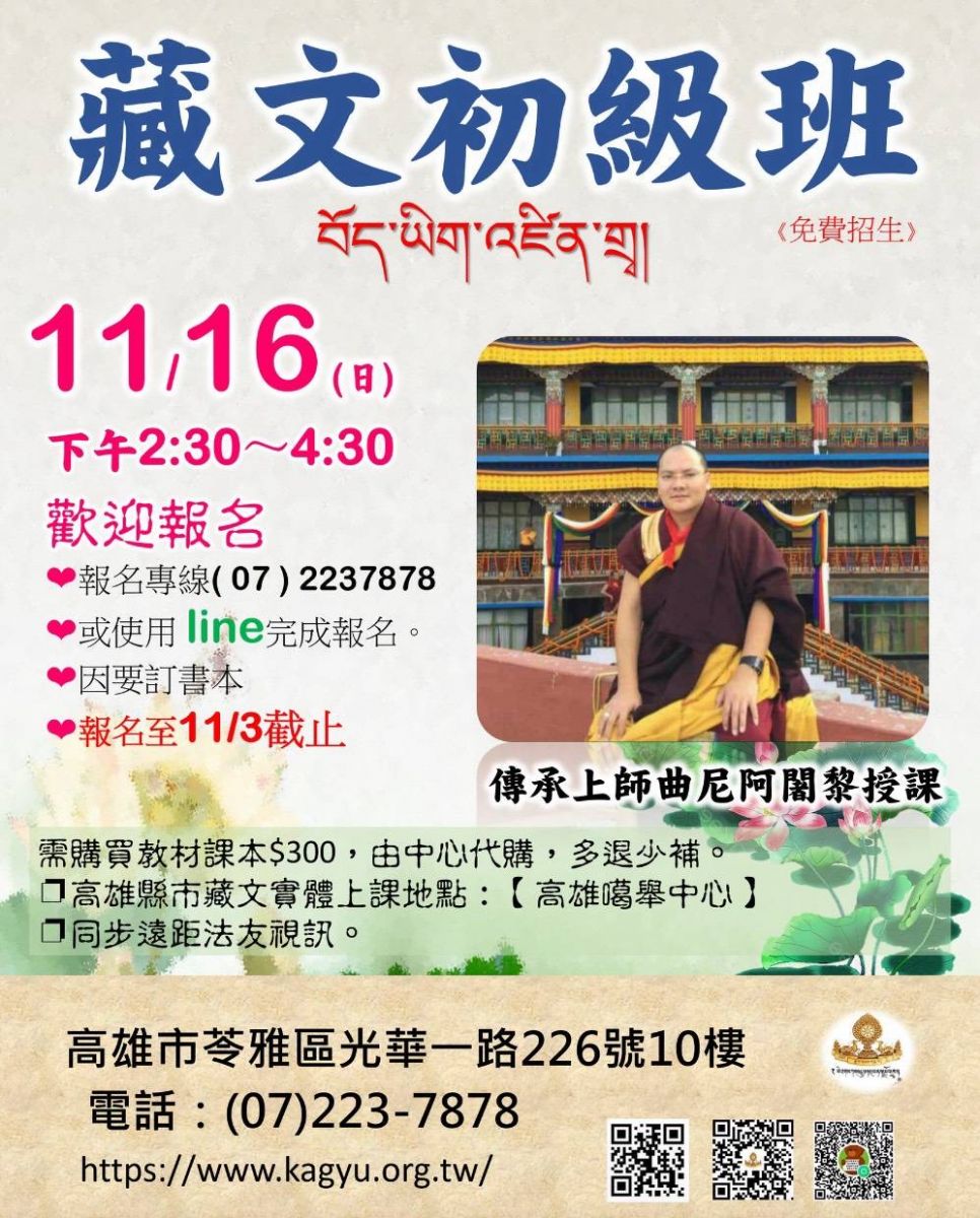 ❐高雄縣市藏文實體上課地點:【高雄噶舉中心】